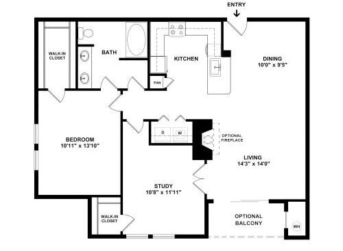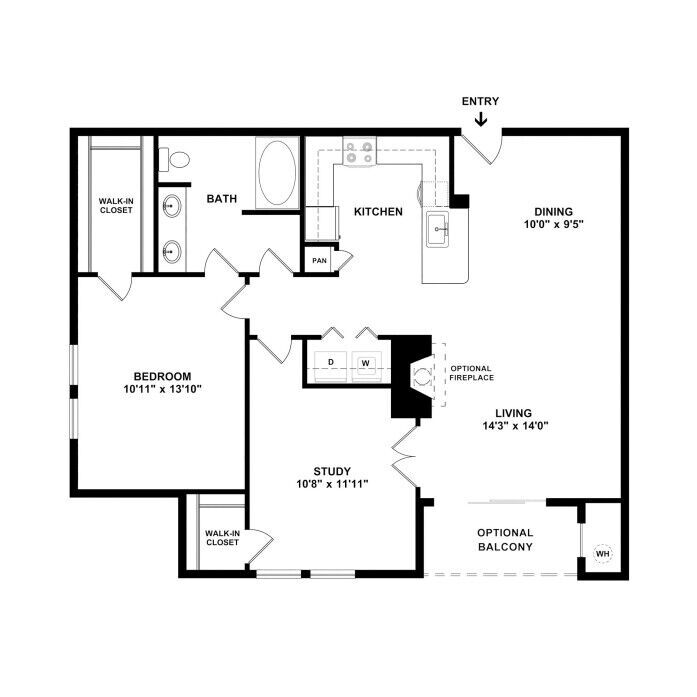 Beds: 1, Baths: 1, SQFT: 893 - 950