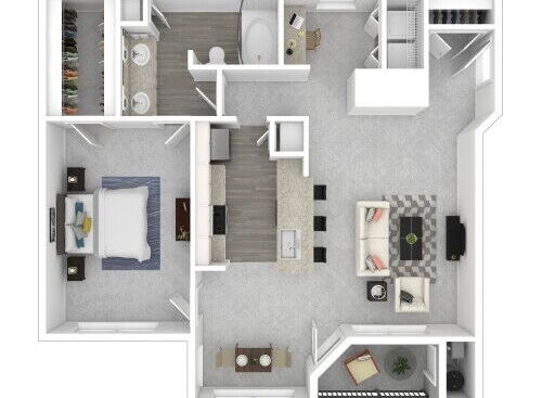Renderings are intended only as a general reference. Features, materials, finishes and layout of units may be different than shown. For more details, ask a leasing representative about specific apartment features.