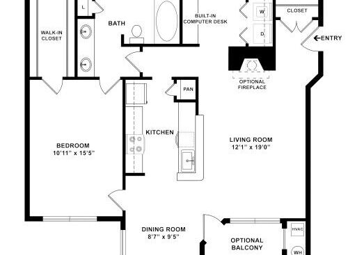 Many homes include built-in desk nooks for focused work, while select homes add solariums, fireplaces, or private garages, giving you the option to tailor your home for commuting, hosting, or quiet nights in. Whether you’re drawn to a streamlined one-bedroom, a two-bedroom with clearly defined living and sleeping areas, or a three-bedroom with room for guests and hobbies, there’s a floor plan that fits.